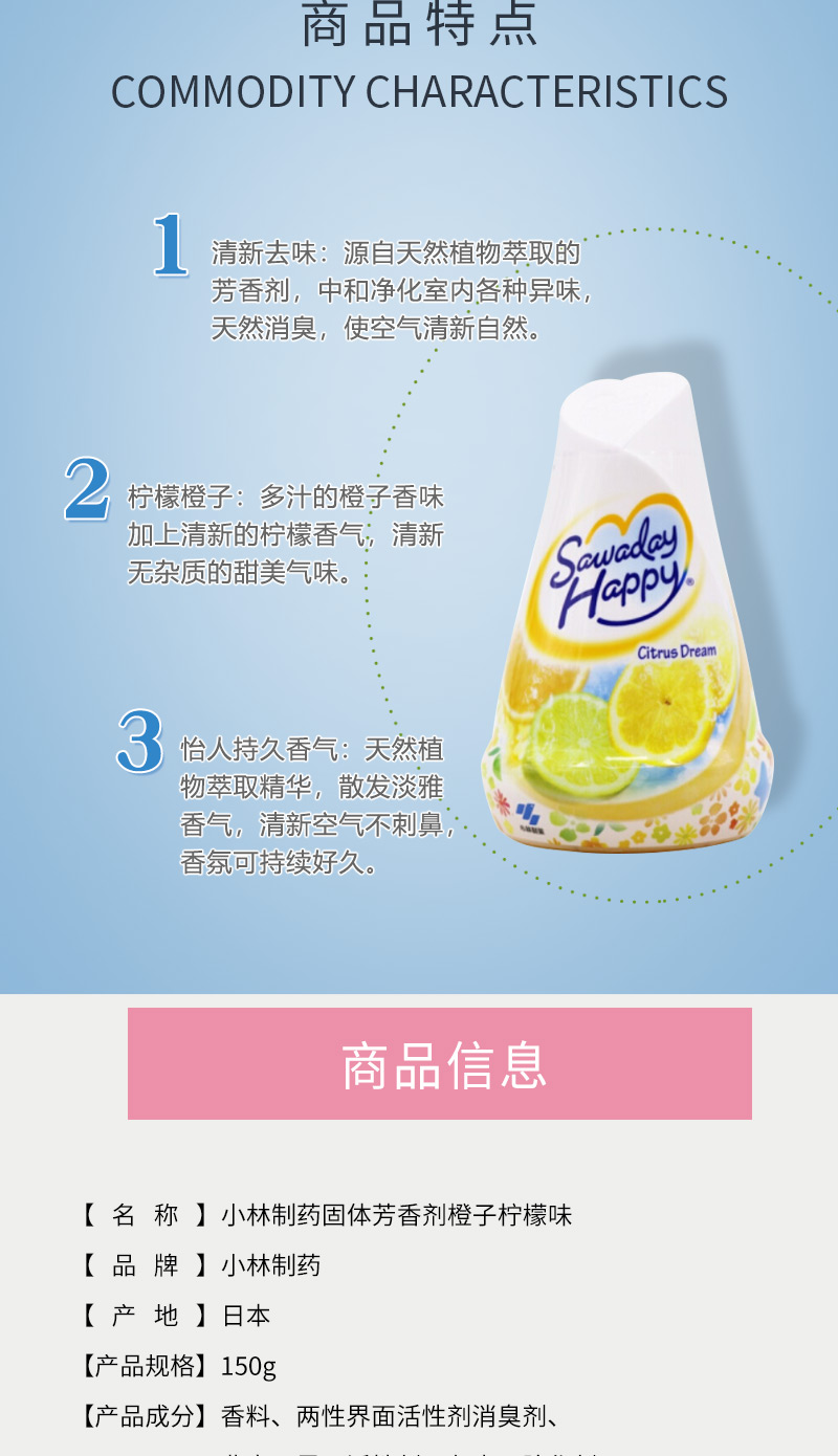 小林制药固体芳香剂150g橙子柠檬味 空气清新剂