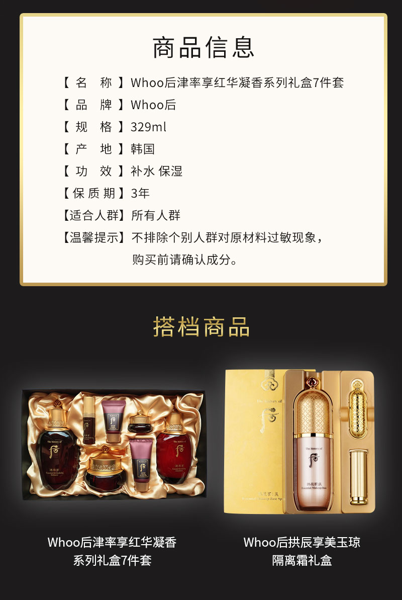 Whoo后津率享红华凝香系列礼盒7件套329ml 尊宠7件礼
