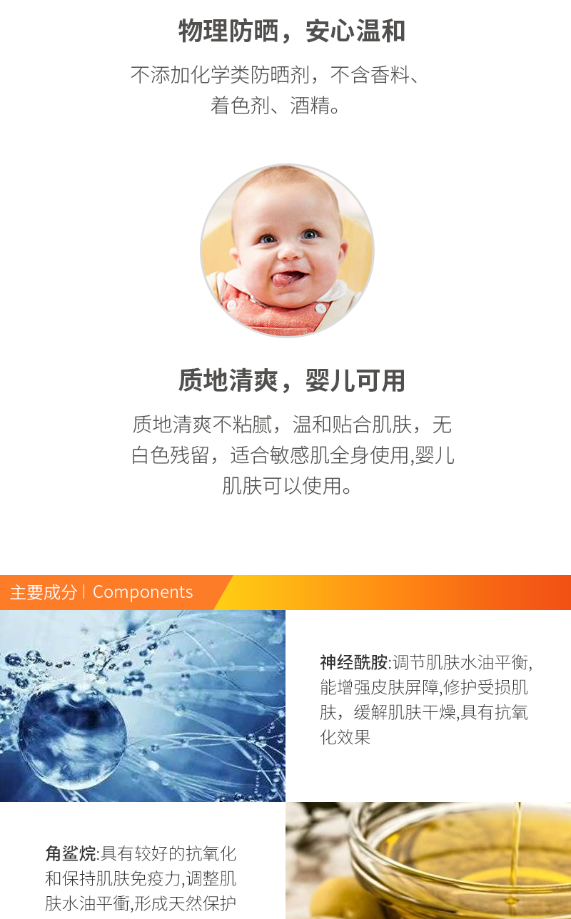 纯物理防晒 温和保湿 低敏感 不黏腻 不含紫外线吸收剂