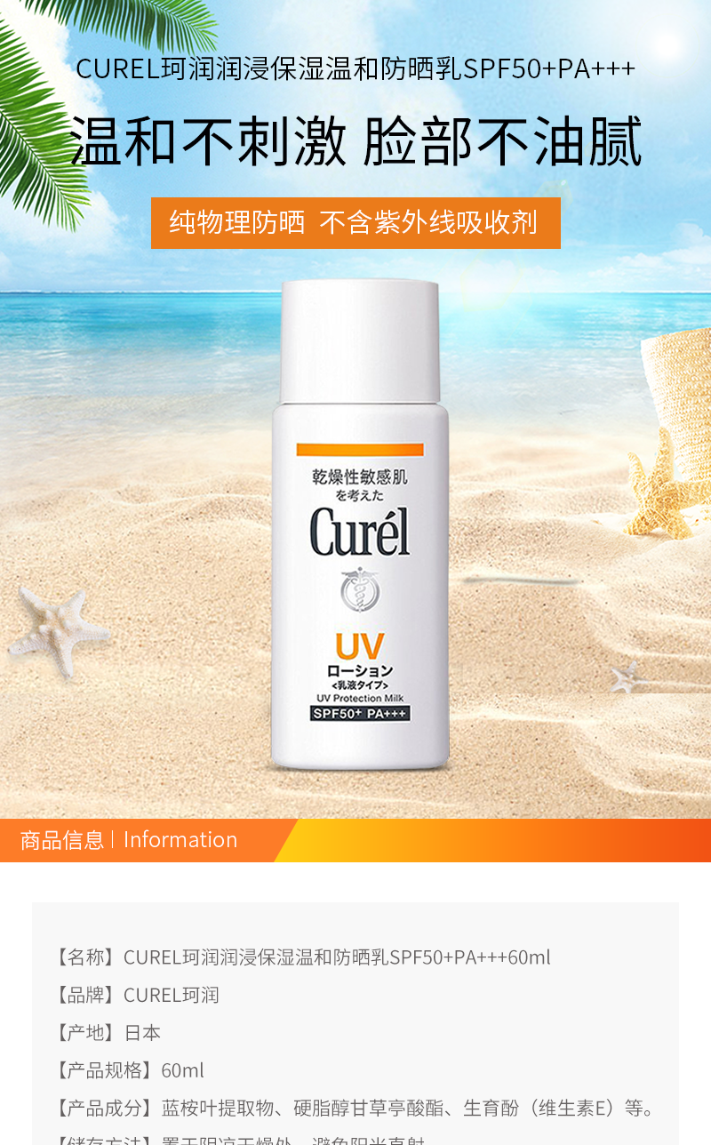CUREL珂润润浸保湿温和防晒乳SPF50+PA+++60ml