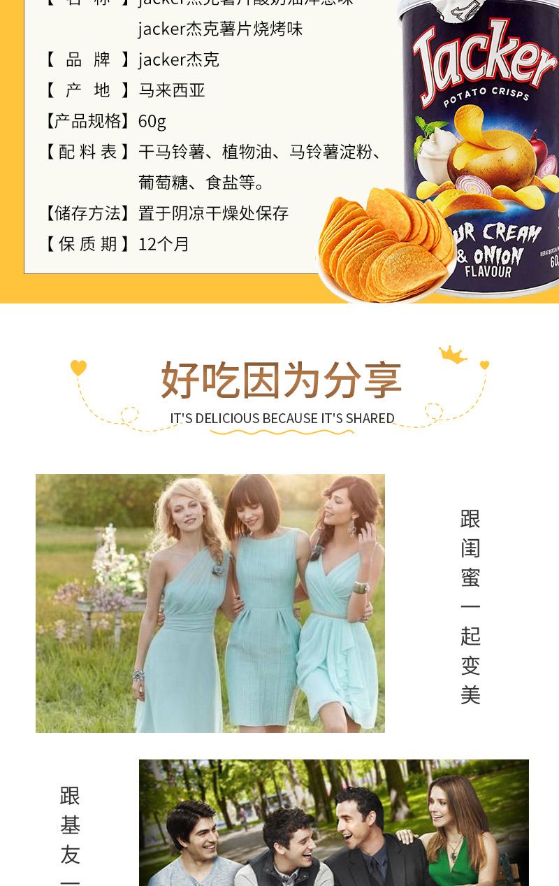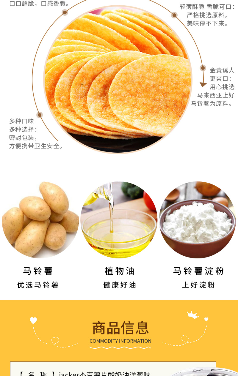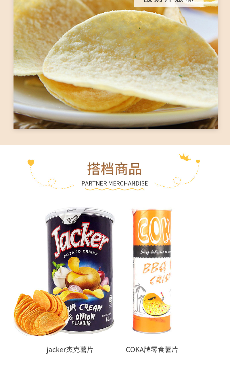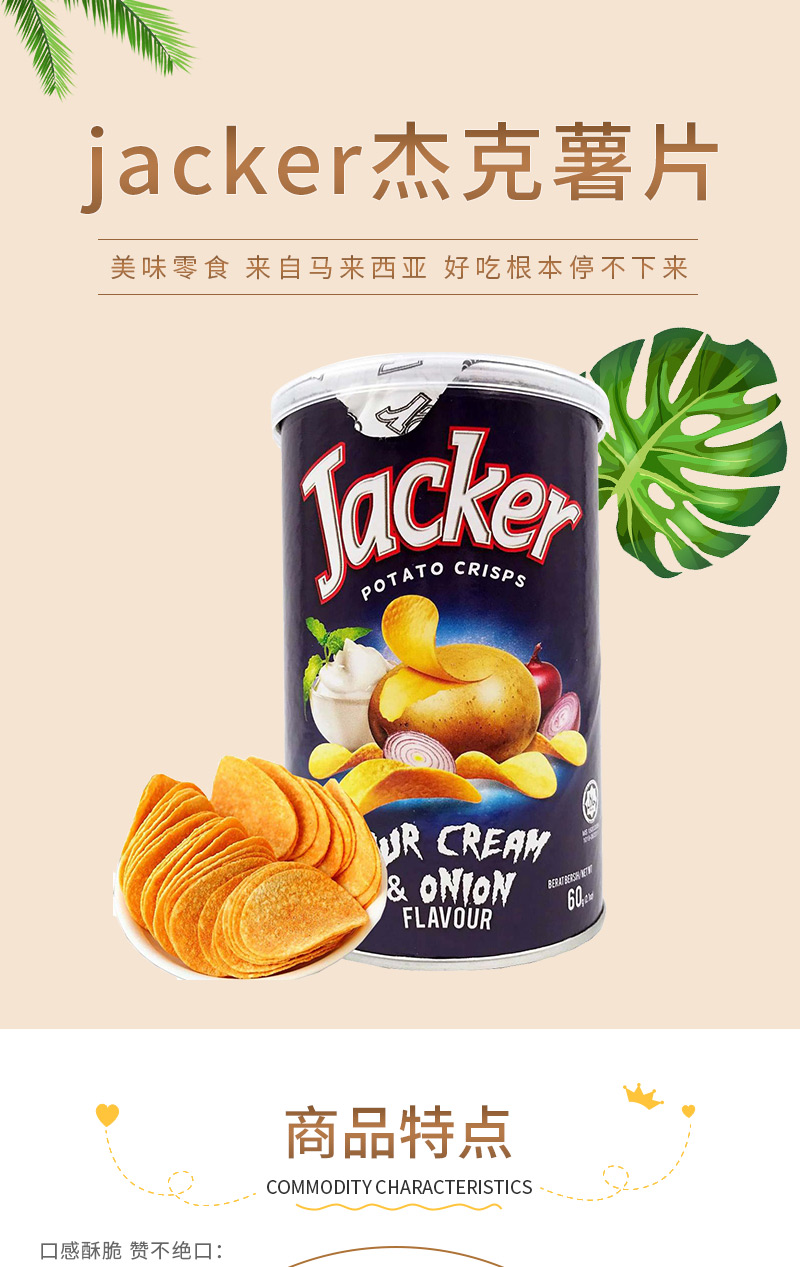 jacker杰克薯片酸奶油洋葱味60g 薄脆爽口 浓香美味