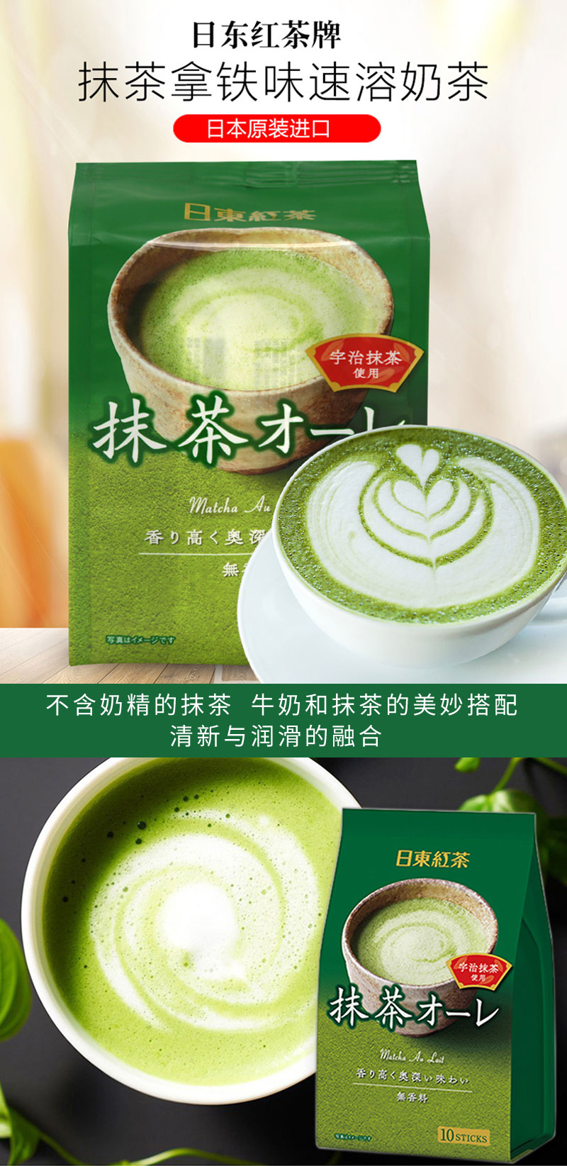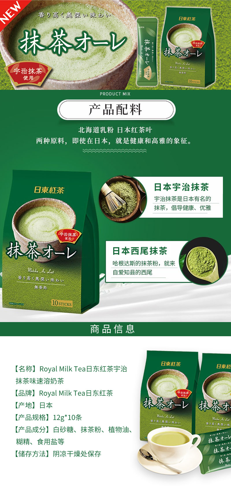 Royal Milk Tea日东红茶宇治抹茶味速溶奶茶120g 不含奶精