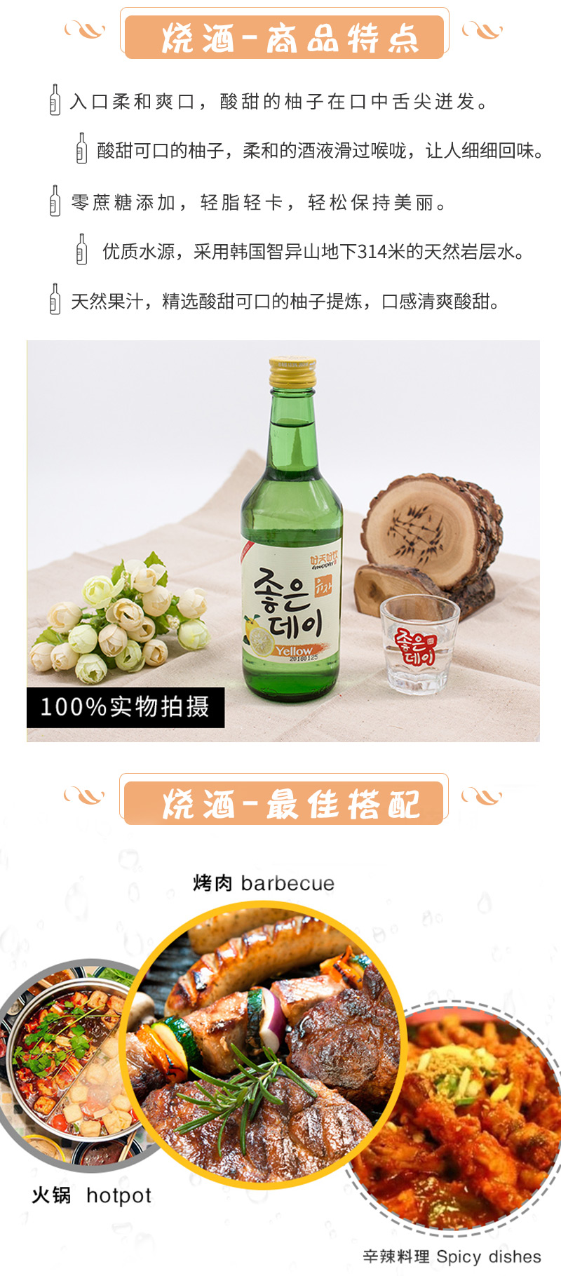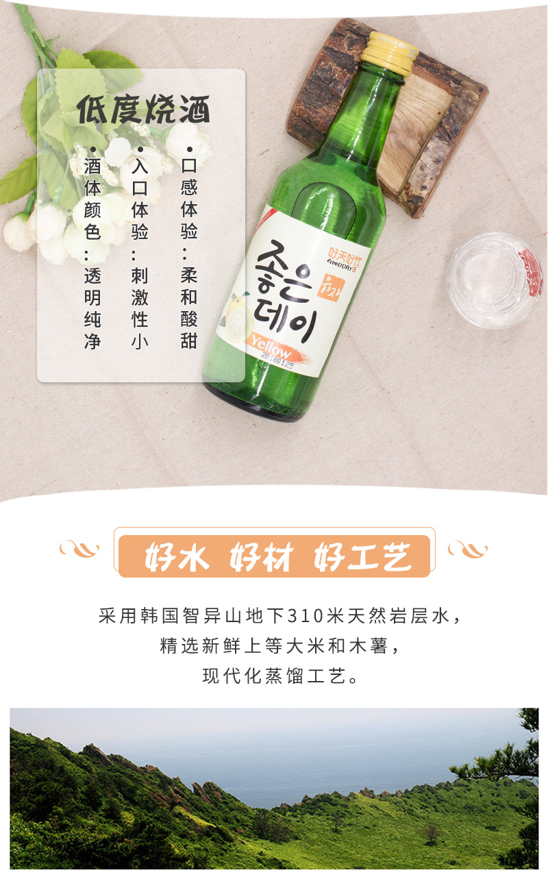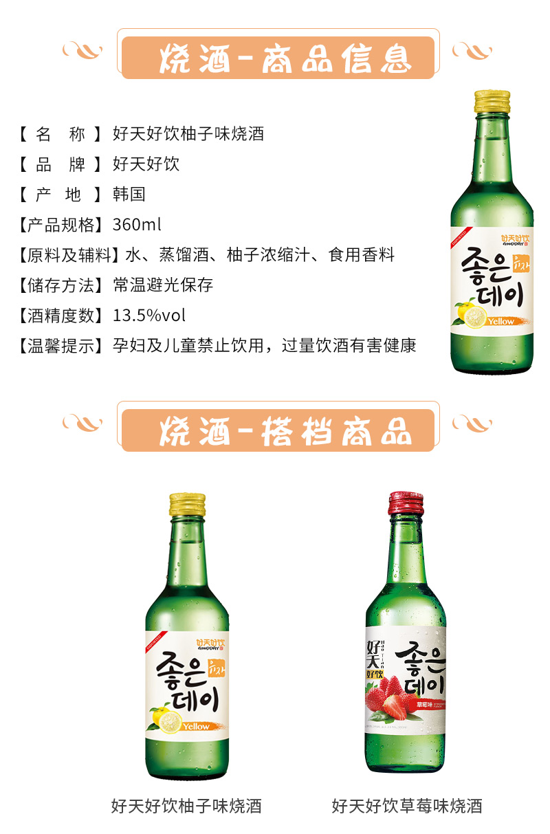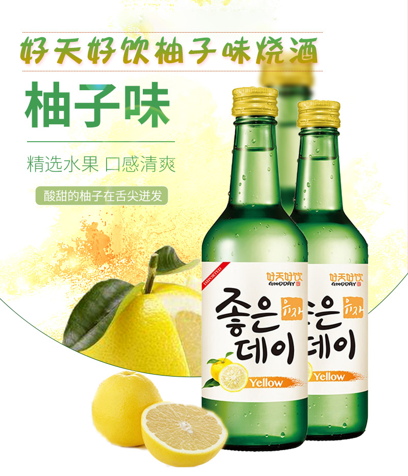 韩国好天好饮柚子味烧酒360ml 精选水果 口感清爽