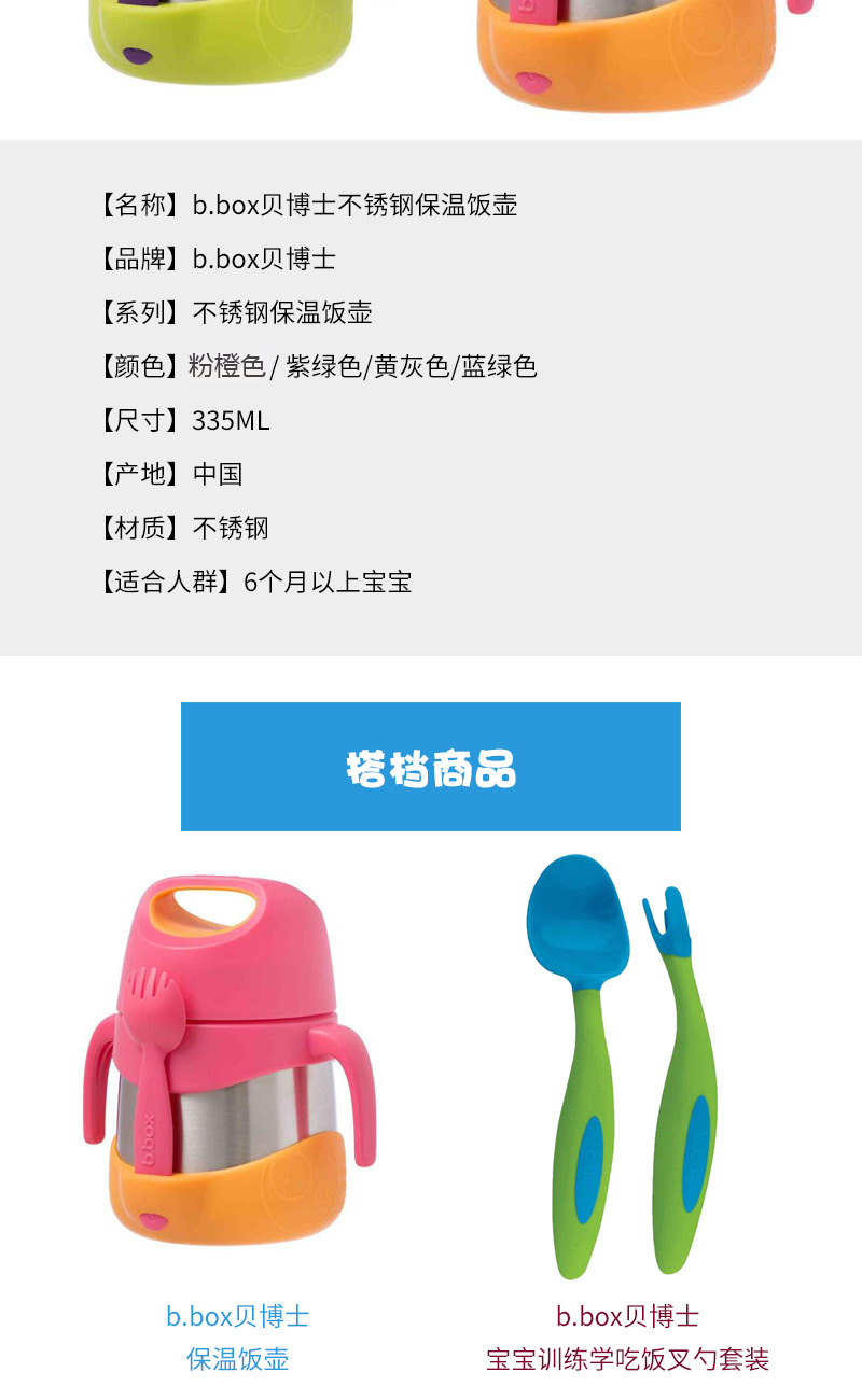 b.box贝博士不锈钢保温饭壶335ML 超长保温 儿童专用