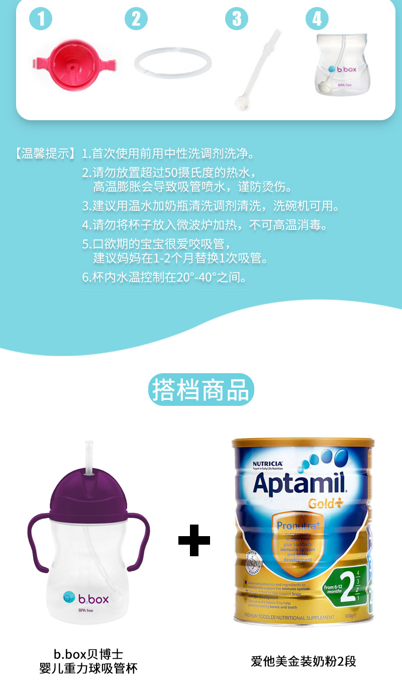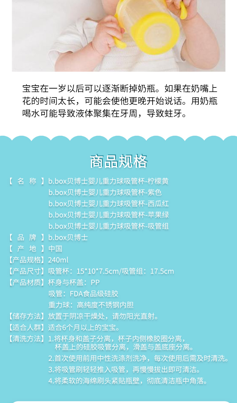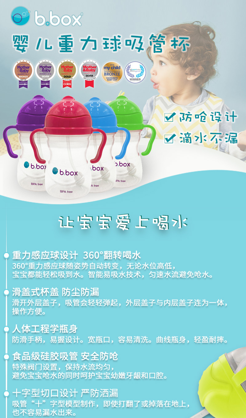 b.box贝博士婴儿重力球吸管杯240ml 防漏防呛轻松畅饮