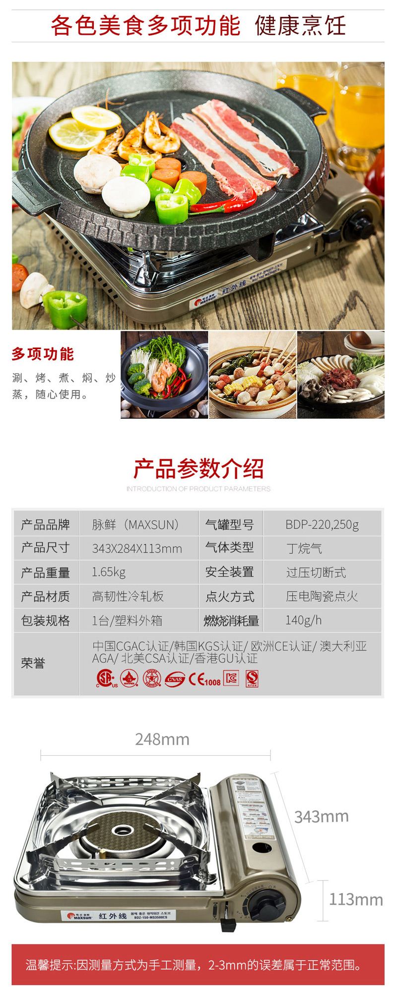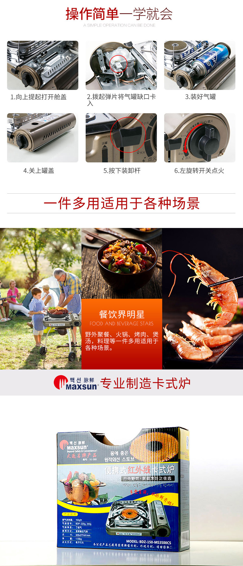 韩国MAXSUN脉鲜便携式卡式炉BDZ-150-MS3500CS 户外野餐烧烤防风便携炉具