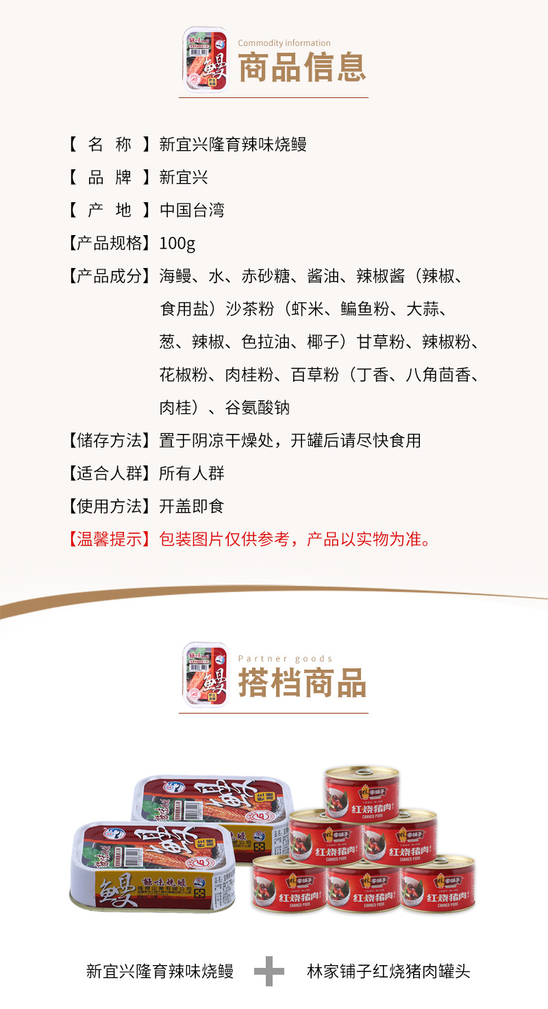 新宜兴隆育辣味烧鳗100g 辣味烧鳗 开胃即食