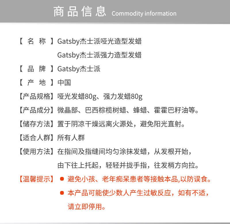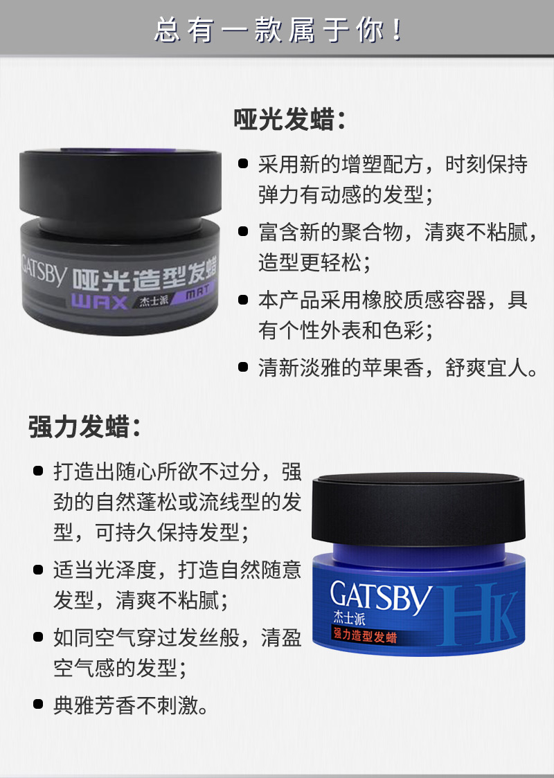 Gatsby杰士派造型发蜡80g 持久定型 干爽不黏腻